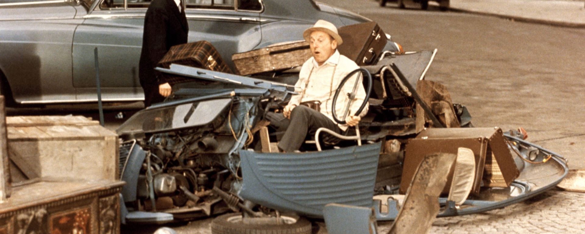 1965, Le Corniaud. Une 2CV conduite par Bourvil explose dès la scène d’ouverture. « Elle va marcher beaucoup moins bien, forcément », clame l’acteur à son camarade de jeu Louis de Funès, alors que sa voiture est complètement détruite. Cette séquence mythique du cinéma français a sûrement fait de cette 2CV bleu-gris la plus connue de toutes celles passées sur le grand écran.