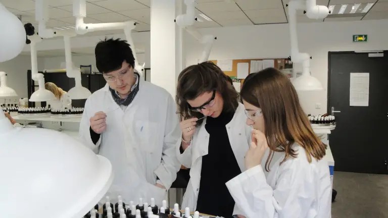 Pour chaque groupe de métier, des compétences olfactives sont nécessaires. Il existe de nombreux débouchés dans le domaine de la parfumerie. Les étudiants peuvent exercer un « métier créatif ». Cela comprend les métiers de nez, de préparateur, d’aromaticien, et d’analyste sensoriel. « Le préparateur est l’assistant du parfumeur. L’aromaticien est spécialiste du goût. L’analyste sensoriel teste les parfums », explique Emma Gérard.