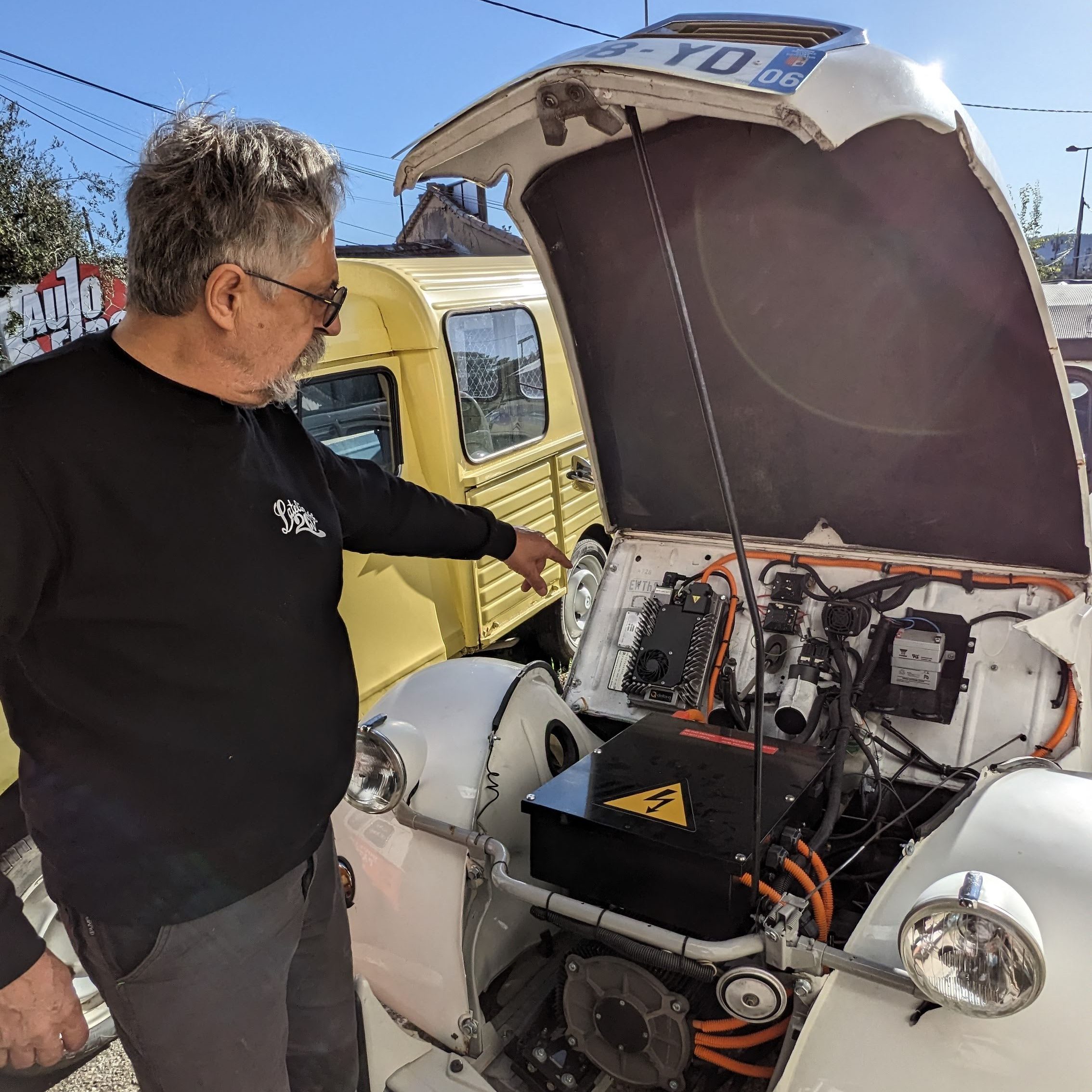 De plus en plus de deux chevaux expérimentent le rétrofit pour passer à l’électrique. Coûteux, ce dispositif, très encadré pour les « deux pattes », ne fait pas l’unanimité au sein des passionnés. L’Atelier de la 2 CV à Grasse est l’un des établissements agréés en France.