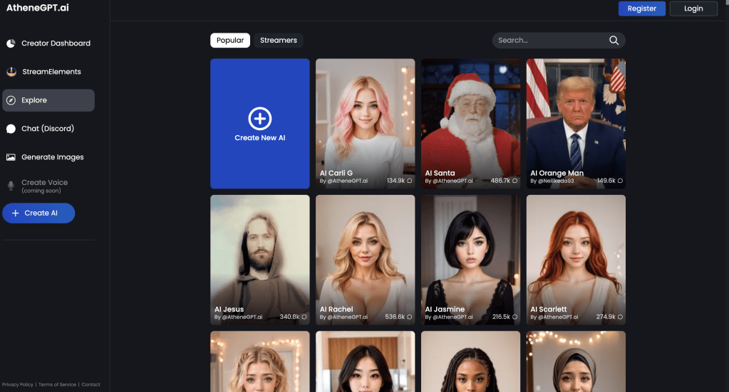 Tout comme il est possible de converser avec des centaines d’autres intelligences artificielles représentant par exemple le père Noël, Donald Trump, des femmes et des hommes aux apparences réelles ou animées. Passé quelques minutes, le site vous demande de vous enregistrer. Pour ce faire, pas possible de créer un nouveau compte. Il faut obligatoirement passer par un site tiers, tel que Google, Facebook, Apple, Twitch… En se connectant via un de ces comptes, le site risque de récupérer vos informations personnelles. Qui sait où elles iront ensuite.