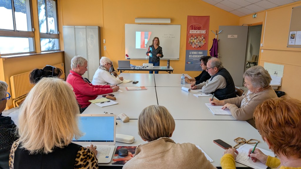 La porte s’ouvre, la professeure Sandrine Skiller accueille ses élèves avec un grand sourire. Tous sont heureux de la retrouver pour le premier cours de l’année 2025 : “C’est notre rentrée entre vieux”, ironise Helga, provoquant un rire collectif.