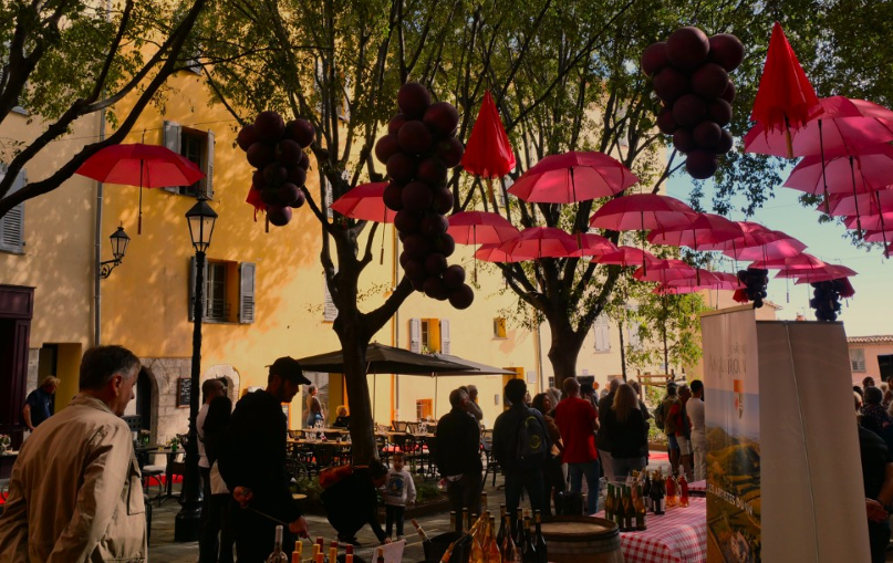 Le raisin tombe sur Grasse. La capitale du parfum a accueilli, le samedi 27 septembre, la Fête des vendanges pour sa sixième édition. La mairie et la fédération économique de Grasse (FEG) ont travaillé ensemble pour organiser le rassemblement. L’événement a pris place dans le centre historique de la ville. Pour l’occasion, des grappes géantes ont rejoint les mythiques parapluies roses au-dessus des têtes. “Au total, il y a plus d’une trentaine d’exposants”, indique Lætitia Garavagno, agente de mairie. Dans la fraîcheur des terres, les visiteurs ont pu “arpenter” les rues, leur verre floqué au nom de la ville à la main. Ils y ont découvert les différents vignerons et leurs cuvées. “L’objectif a été de valoriser la production à l’échelle locale”, précise la chargée de projet.