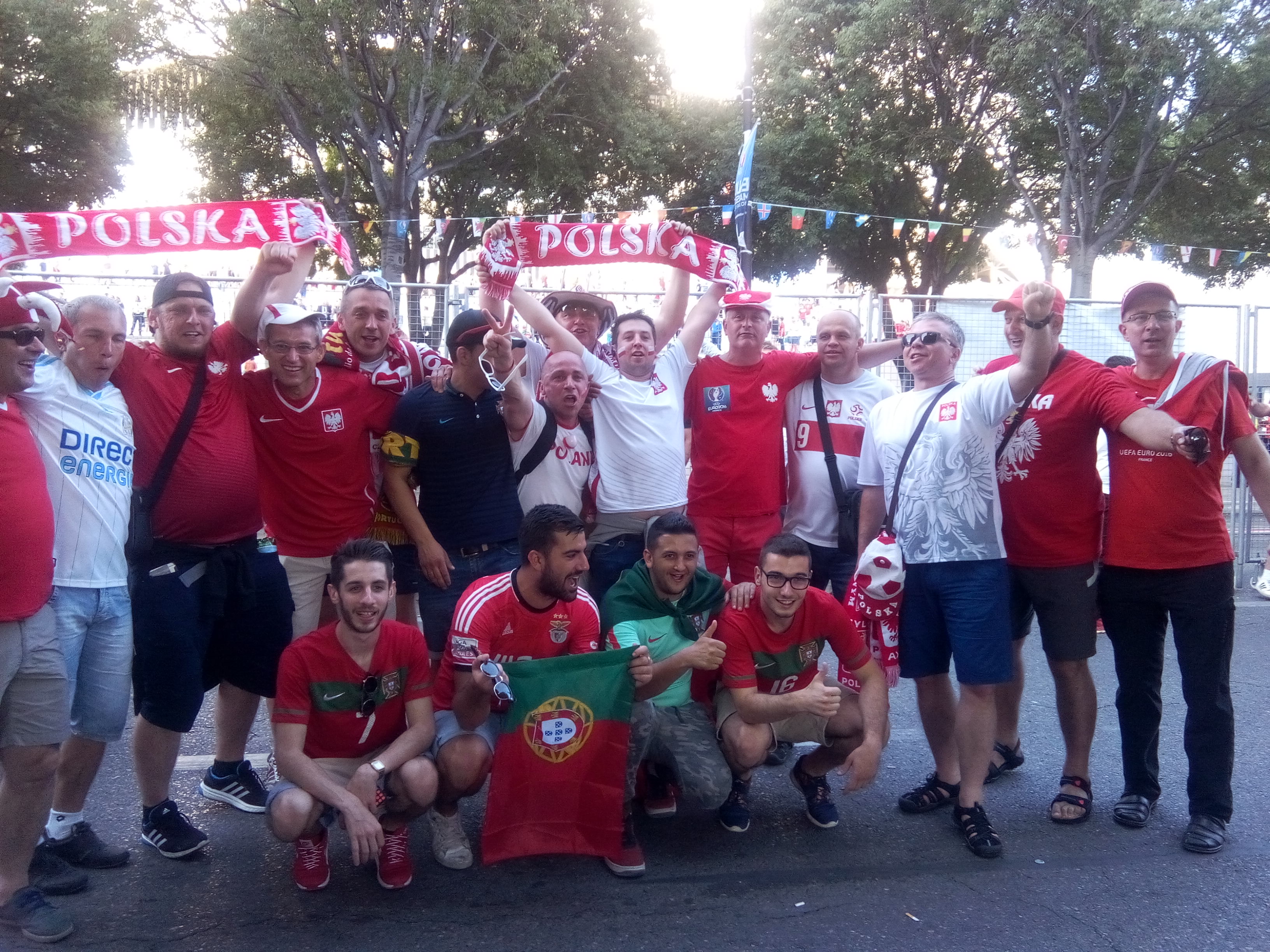 Supporters polonais et portugais chantent ensemble